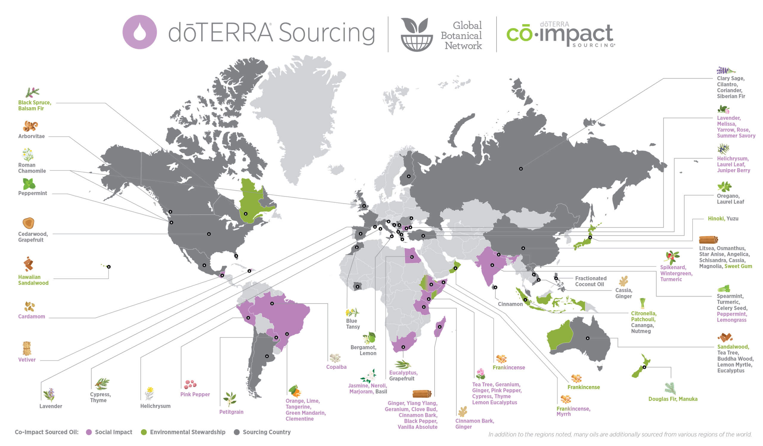 Olejki eteryczne doTERRA pochodzą z całego świata tak aby rośliny, z których są pozyskiwane, były uprawiane tam, gdzie naturalnie występują i mogą wytworzyć najwartościowsze olejki eteryczne. Ponad połowa z tych państw to kraje rozwijające się, w których poziom ubóstwa jest znaczny, a model współpracy Co-Impact-Sourcing służy również poprawie sytuacji lokalnych społeczności zaangażowanych tam w produkcję olejków. doTERRA oferuje im wsparcie w postaci przekazywanej wiedzy, dofinansowania infrastruktury, tworzy stabilne miejsca pracy, co przyczynia się do zmniejszenie ubóstwa i ma realny wpływ na gospodarkę w tych regionach. Obejrzyj proszę, co mam na myśli: